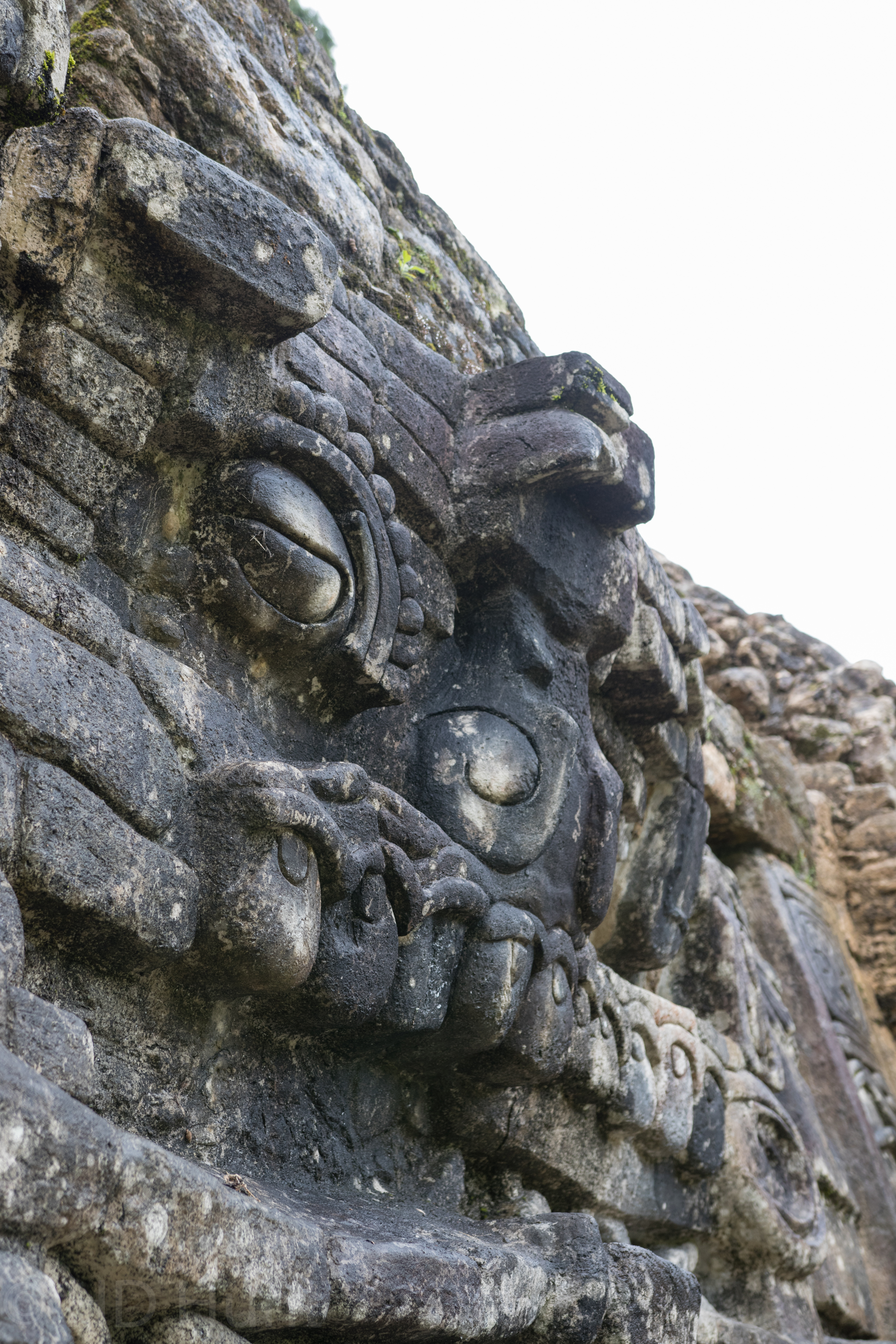 This stone carving is located on Structures B4, B5, B6. Another in-situ stone monument can be seen below.