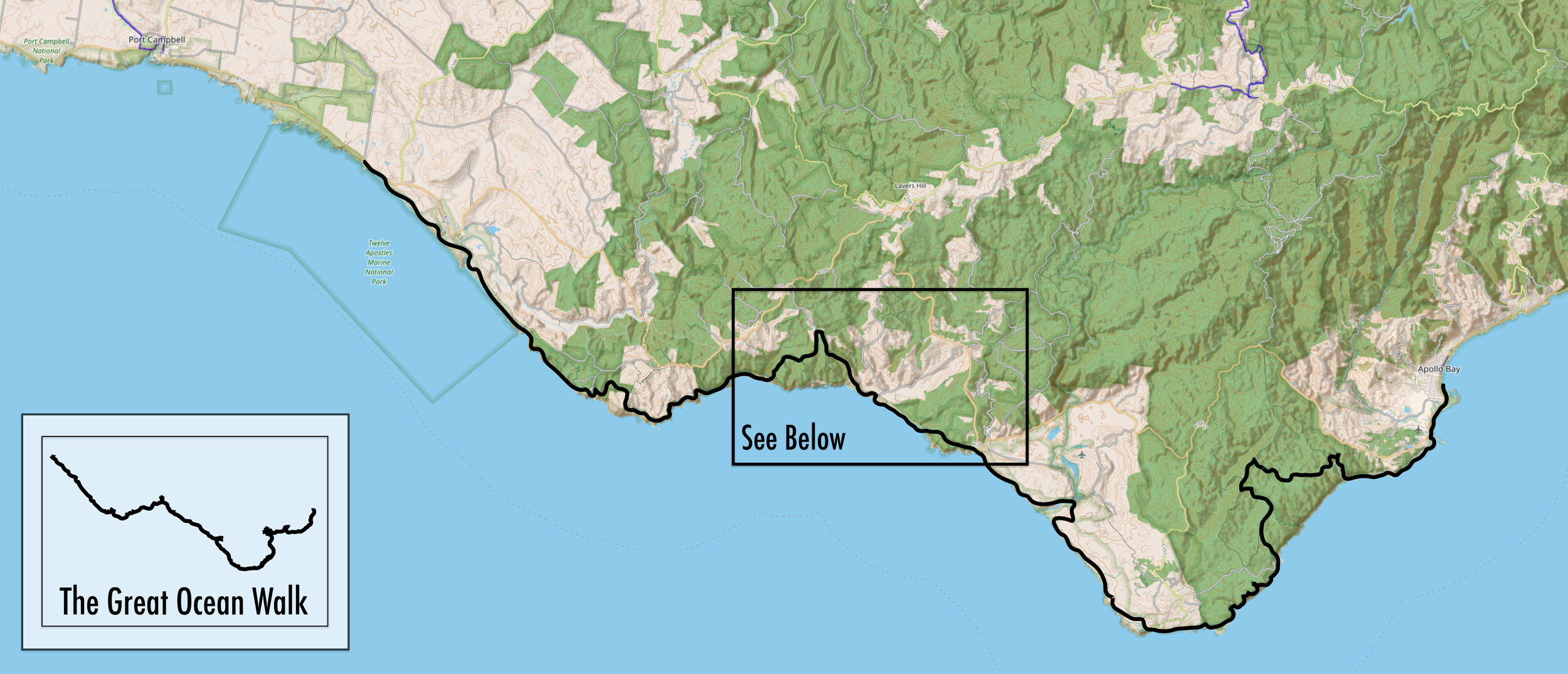 A long day from sea to summit along the Great Ocean Walk, featuring a walk along Johanna Beach and a steady uphill towards the track’s highest point.