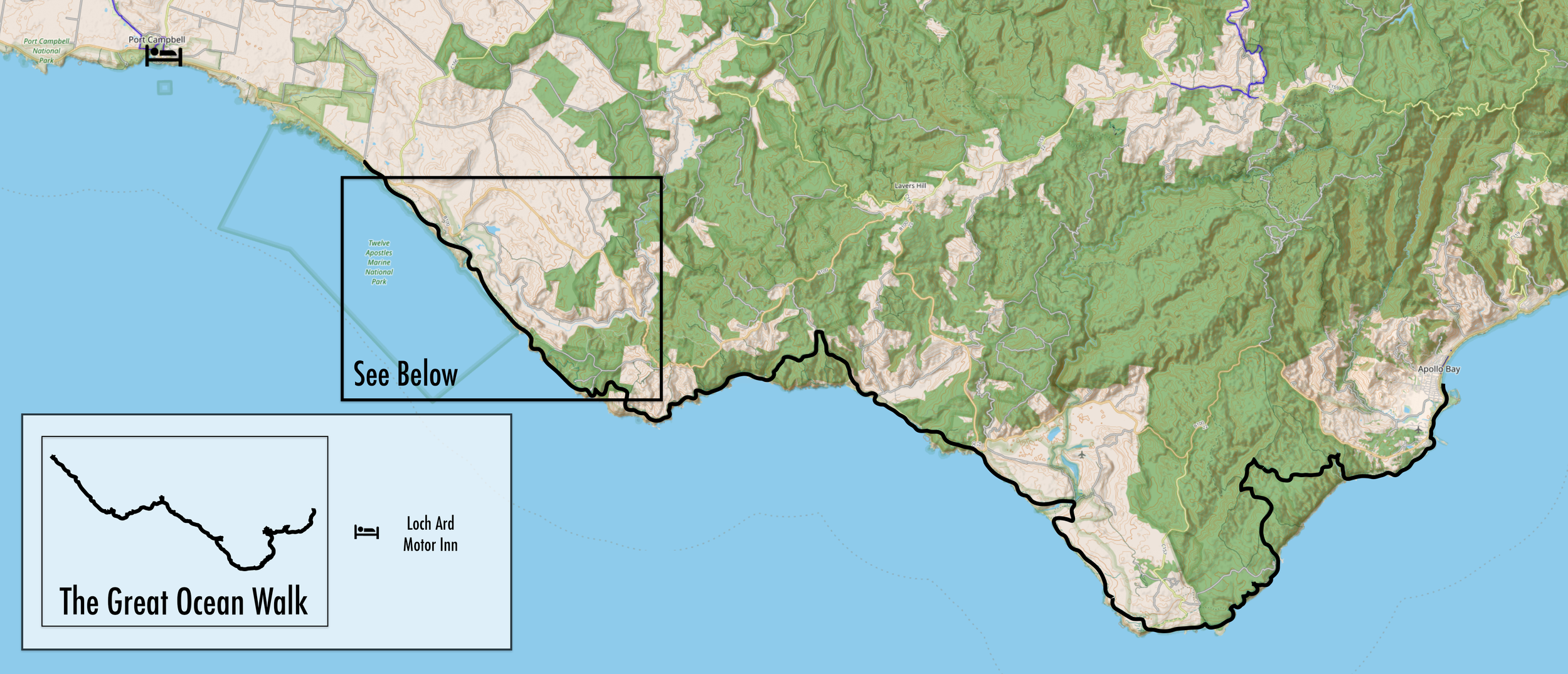 The Walk Victoria’s Icons Lookout is the official western terminus of the Great Ocean Walk, although most everyone considers Twelve Apostles Lookout to be the “true” ending point