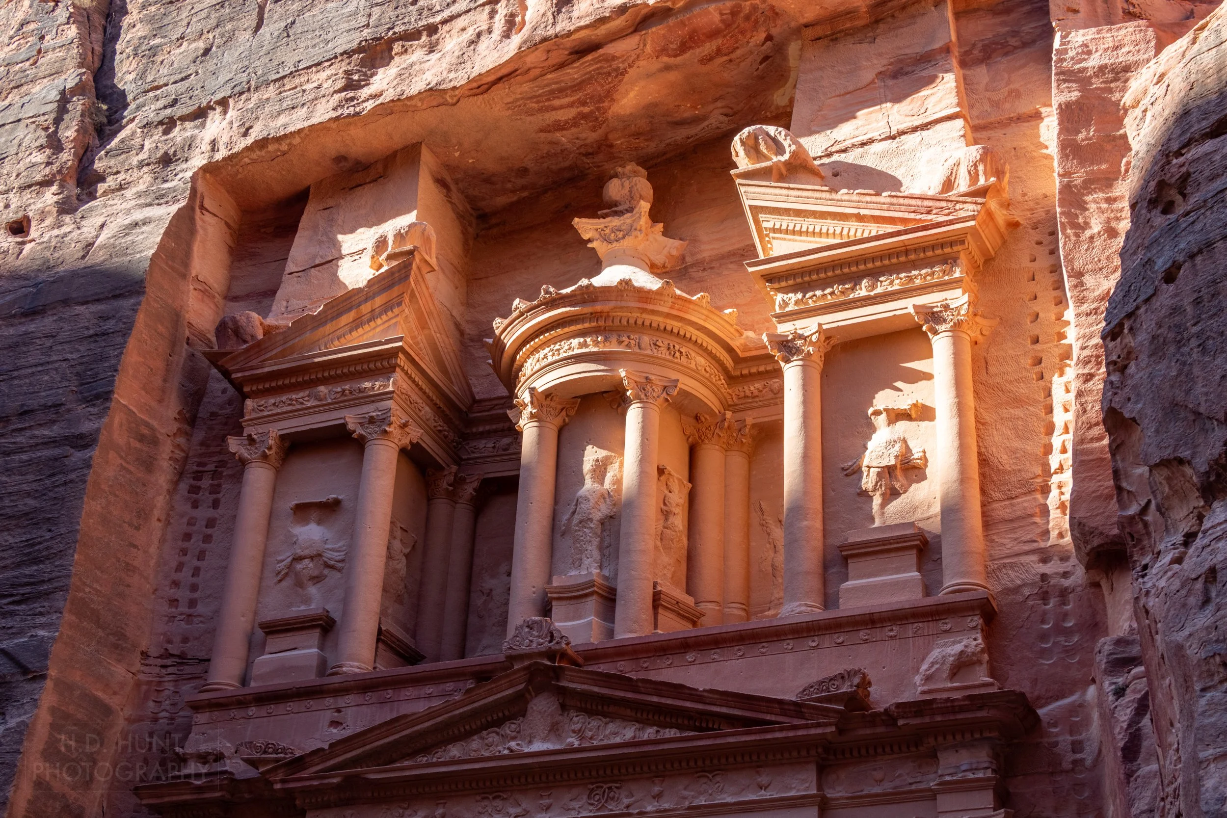 The likely origin of the name “Treasury” comes from the Bedouin tribes who believed the building -particularly the urn-shaped top on the façade- contained valuables; it did not, but the Bedouins could not help but shoot at the urn to try and crack it open, damage from which can be seen today.